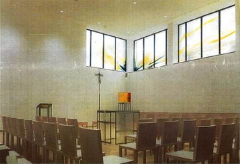 Aus der dunklen Kapelle am Ende des Ganges, die im Jahr 2013 durch ein Hochwasser zerstört wurde, wurde ein großer Raum voller Licht und kunstvollen Glasfenstern.