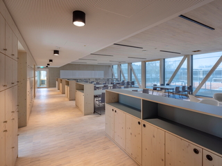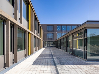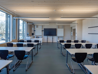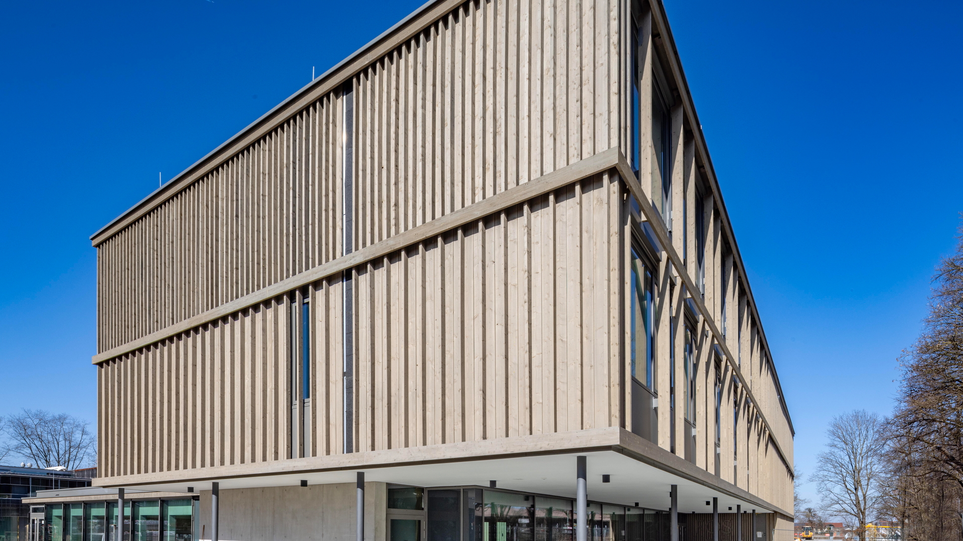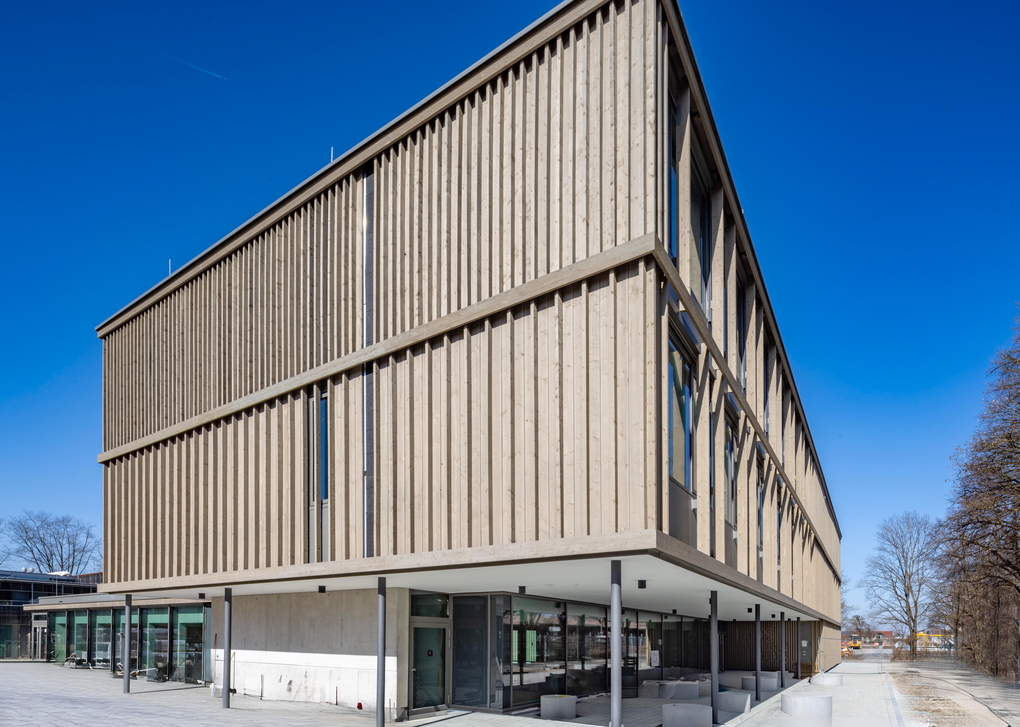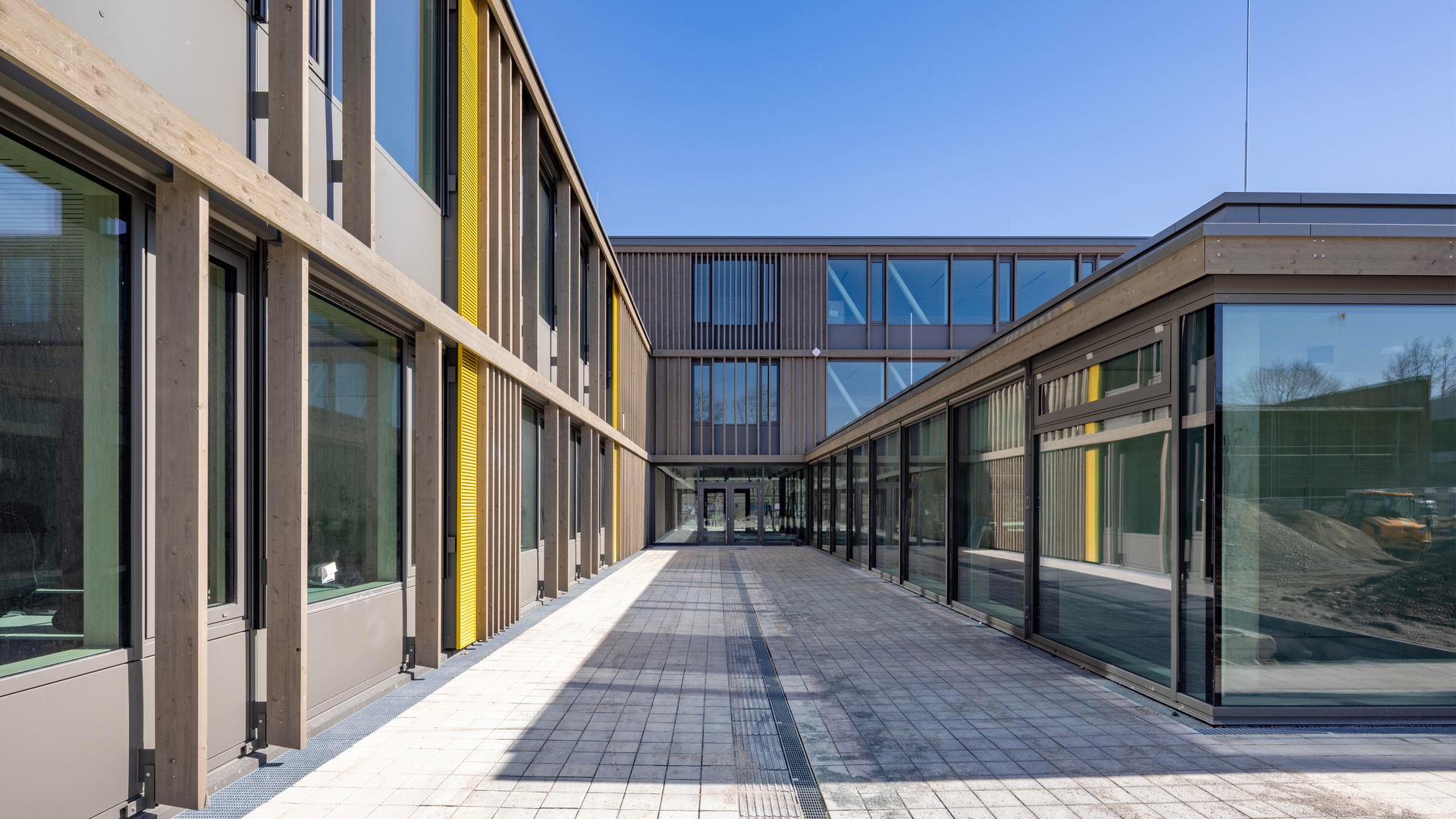 Das Gebäude wurde in nachhaltiger Holzbauweise errichtet und bietet damit nicht nur zeitgemäße Lern- und Arbeitsbedingungen, sondern setzt auch ein Zeichen für ressourcenschonendes Bauen.