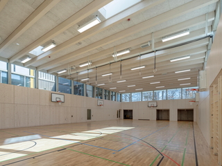 Der Neubau, der bereits seit Anfang 2025 in Betrieb ist, überzeugt durch eine moderne Architektur und ein durchdachtes Raumkonzept. Eine helle, großzügige Sporthalle, neu gestaltete Verwaltungsbereiche sowie zeitgemäß ausgestattete Unterrichtsräume schaffen optimale Bedingungen für Lernen, Arbeiten und Bewegung.